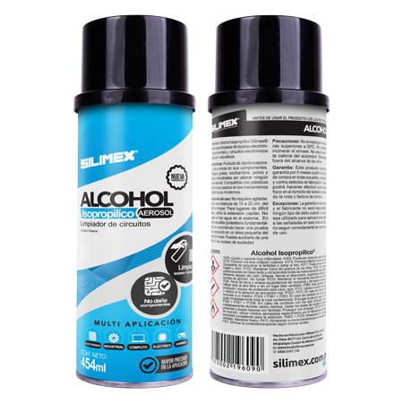 Alcohol isoprop铆lico en aerosol para limpieza de tarjetas electr贸nicas, componentes y circuitos de cualquier naturalezaDoble rendimientoF谩cil aplicaci贸nR谩pida evaporaci贸nSeguridad en la aplicaci贸nNo da帽a la capa de ozono99% de pureza certificado de pureza